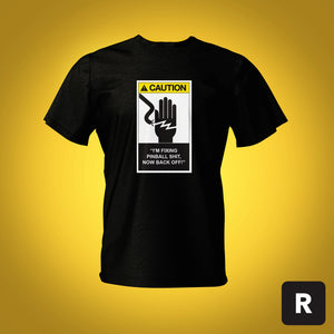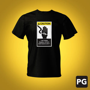 Introducing the ultimate pinball T-shirt for the fearless pinball technician—the one who laughs in the face of high voltage warnings and thrives on the thrill of flipping the switch. This shirt is more than just fabric; it's a badge of honour for the tech who knows every wire, fuse, and flipper mech like the back of their hand. This design proudly declares, "Caution! God Mode Engaged Beneath this Tee!" Perfect for the technician who’s not just fixing machines—they’re mastering them. Wear it with pride and show the world that when it comes to pinball, you're the one in control.
